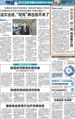 2月24日,《浙江日報》以《傳化化學 打一場“有準備之戰(zhàn)”》為題,介紹傳化化學在疫情防控期間,工作重點動態(tài)調整,防控手冊十天更新三個版本,連點成線,由線成網,助力打贏疫情防控和復工復產雙線戰(zhàn)役。相關報道如下: