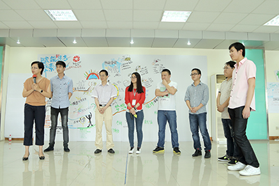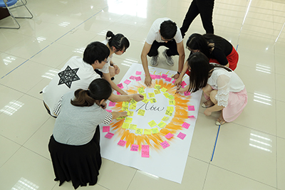 座談會(huì)伊始,英雄部落就分裂成5大陣地,隨即便開(kāi)始了部落之間的激烈角逐。首先,每一個(gè)人需要在組員為自己創(chuàng)作的自畫(huà)像中認(rèn)識(shí)自己,看一下自己在別人眼中的第一印象,并認(rèn)真發(fā)掘自己的優(yōu)勢(shì)所在。在接下來(lái)的團(tuán)隊(duì)協(xié)作中,每個(gè)團(tuán)隊(duì)在討論中出現(xiàn)意見(jiàn)領(lǐng)袖即本部落酋長(zhǎng),以思維導(dǎo)圖的形式將所見(jiàn)所聞所想陳列出來(lái),隨即產(chǎn)生一位攤主把守?cái)偽?,其他成員化身小蜜蜂巡游列部落,采集干貨。在團(tuán)隊(duì)的成果展示、情景劇合作等環(huán)節(jié)中,探索團(tuán)隊(duì)優(yōu)勢(shì),激發(fā)青年員工團(tuán)隊(duì)協(xié)作能力,從內(nèi)在潛能上塑造團(tuán)隊(duì)意識(shí)。